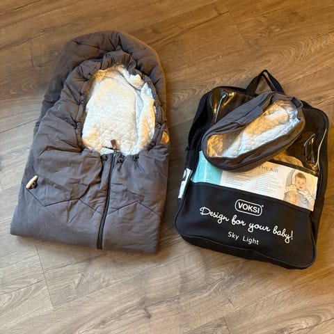 Merke Voksi. Som ny, lite brukt. To farer, grå eller grøn. Sovepose til vinter, haust eller vår. Passer til å sove i. Kr 700 pr pose. Halv pris av ny pris.