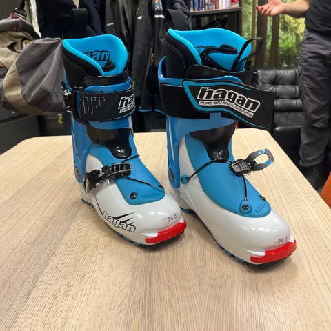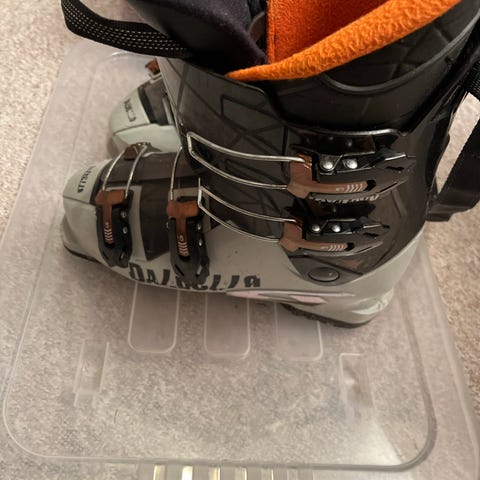 Dalbello ski støvler i blå og svart farge, størrelse 220-225 mm (257 mm). Støvlene har flere spenner for justering og god passform.