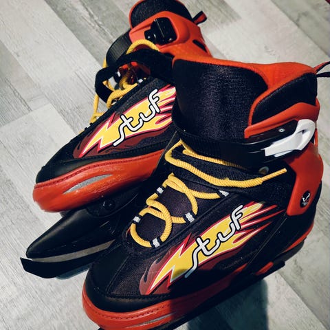 Bare neoprene sko i størrelse 43-44, jeg bruker vanligvis 44-45. Passer fint