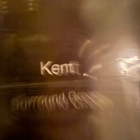 Normal bruksslitasje/patina etter alder og bruk – se bilder. Skiltet øverst har knekt og er teipet og limt.