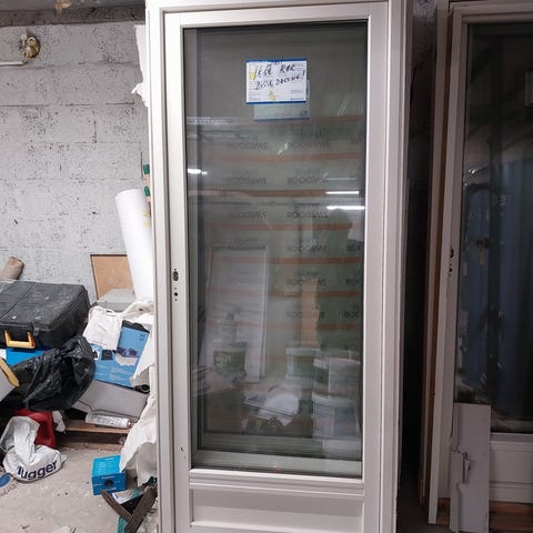 Swedoor ytterdør i grå farge. Døren har enkel design og er egnet for utendørs bruk som inngangsdør eller lignende. Disse har blitt feilmontert og er helt nye. 200x90 størrelse