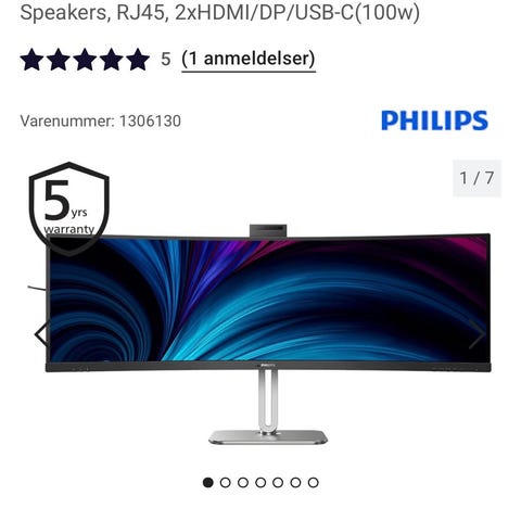 Skjermen har en bueradius på 1800R og støtter 16,7 millioner farger med 72% NTSC fargeskala.