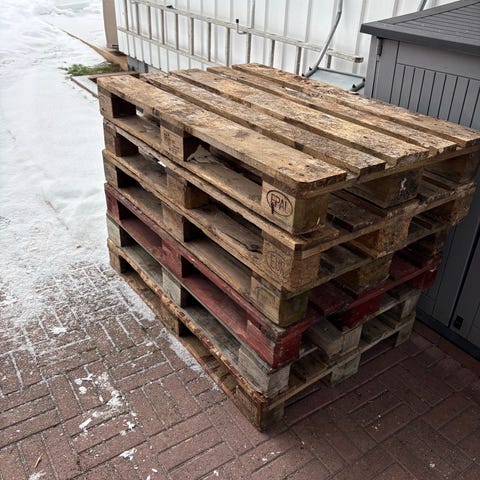 Tre paller laget av tre, egnet for lagring og transport.