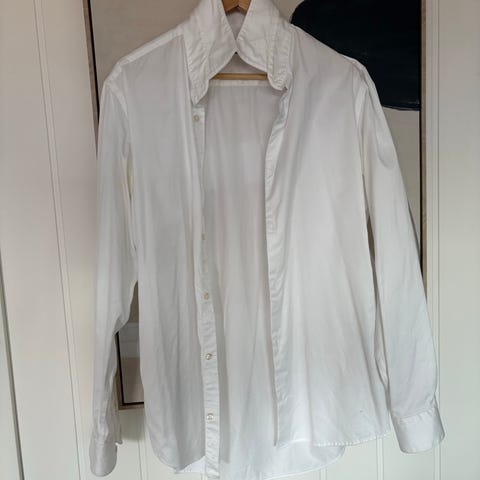 Hvit OCBD fra Anglo-Italian. Har ikke prøvd å få bort misfarging under armhule, men er som oftest enkelt å få bort.