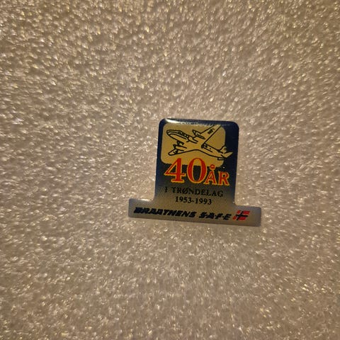 Braathens Pioner arbeidsjakke i størrelse L. Jakken er blå med røde og hvite detaljer, laget av polyester og bomull.