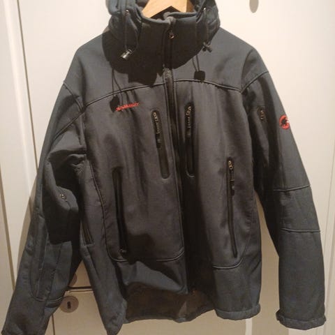 Mammut jakke i størrelse XL med flerfarget design. Laget av dunmateriale som gir isolasjon og varme. Egnet for utendørs bruk.