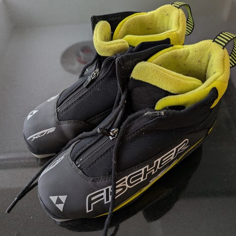Fischer XJ Sprint langrennssko i svart og gul farge. Skoene har snøring og glidelås foran. Egnet for barn eller juniorbruk.