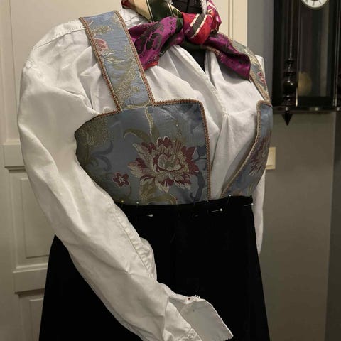 Selger min nydelige bunad som er laget og sydd av Husfliden. Den passer en XS, men kan legges ut og ned. Har ikke blitt brukt mer en ca 5 ganger. Trygt og nøye oppbevart
