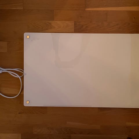 1 stk. Mill glasspanelovner med elektronisk termostat selges for kr. 500. Virker helt fint, men er tatt ut av bruk pga. varmepumpe.