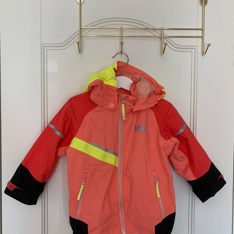 Knallsøt og god Helly hansen seilerjakke til barn. God turjakke som også tåler regn. Bitte liten rift i jakken hvor lommen er, dette kan enkelt tapes over.