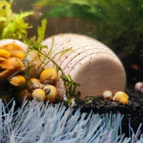 Selger fine røde eplesnegler. De er små enda, men gjør en kjempe jobb i akvariet pg spiser alger og avfall. Må hentes😊