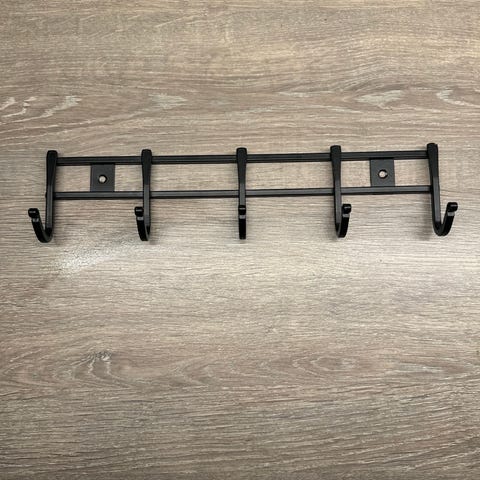 Knagglist i hvit farge med fem metallknagger. Laget av tre og metall. Kan brukes til oppheng av klær, vesker eller annet tilbehør. Veggmonterbar med skruer gjennom forhåndsborede hull.