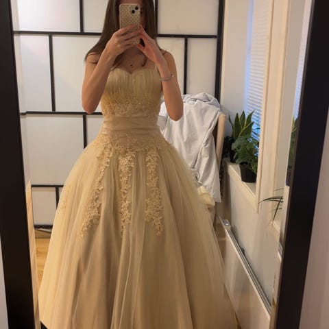 Nydelig ballkjole kjøpt ny hos Lychinor i januar 2026 leies ut til spesielle anledninger. Kjolen har vakker snøring bak som gjør den enkel å tilpasse, og passer derfor størrelser fra XXS til M. De lave skulderstroppene gir et ekstra flatterende og elegant uttrykk.
