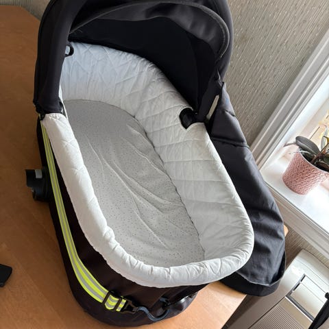 Denne ble kjøpt brukt i 2023 av et par som hadde kjøpt den selv ny men bare brukt i par uker før de måtte kjøpe en mindre vogn da de hadde en liten bil. Så den var mer eller helt ny da vi overtok den. Er blitt godt brukt av to barn i mitt eie men mest med barn nr 1 da vi kjøpte tvillingvogn da nr 2 kom.