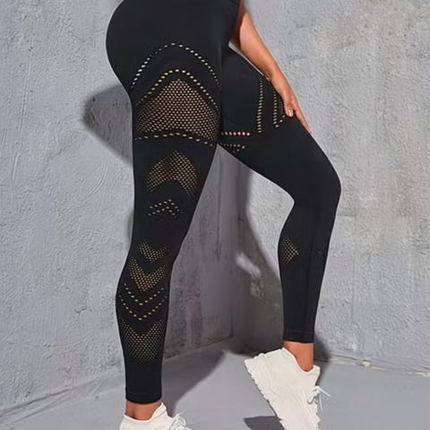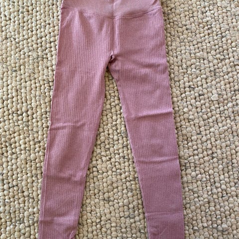 H&M treningsleggings for dame i størrelse M. Designet for fitness med svart og rosa mønster. Laget av elastisk materiale som gir god bevegelighet under trening.