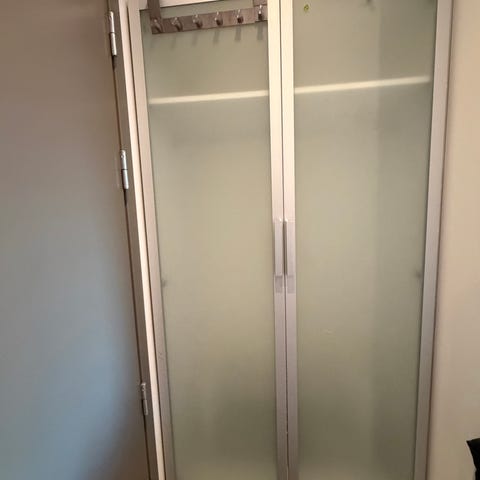 Vi selger garderobeskapet med innredning til billig peng pga renovering. Hentes snarest. Demontert og klart til og hentes