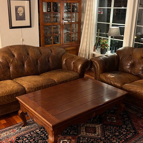 Natuzzi skinnsalong 2-seter og 3-seter. Bredde på 2-seter: 180. Bredde på 3-seter: 230. Selges samlet for kr. 1.000. Må hentes.