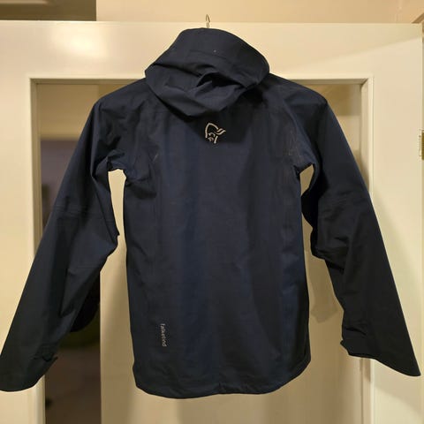Norrøna Falketind Goretex jakke for jr i størrelse 140, grønn farge. Jakken har hette og glidelåslommer. Materialet er tilpasset sport og utendørsaktiviteter. Jakken har et mindre hull på ermet, se bilde for detalj.