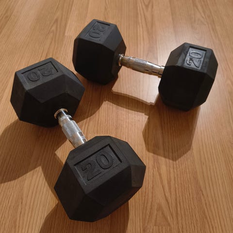 Selling set of hex rubber dumbbells