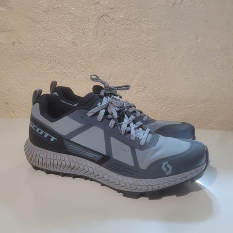 Scott terrengsykkelsko i størrelse 42, svart farge. Skoene er designet for terrengsykling med en robust konstruksjon og borrelås- og snøresystem for god passform.