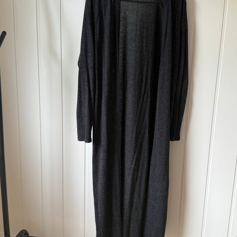 Lang tykk cardigan i sort og hvitt mønster, fra Gina Tricot, i størrelse XS/S, men er mer som en S. Pent brukt, men er nok noen nupper her og der.