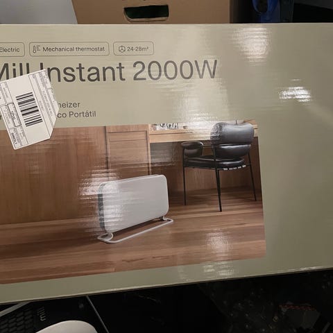 Mill panelovn i hvit farge med ledning og bryter. Passer til oppvarming av rom med elektrisk strømtilkobling. Enkelt design med flatt panel og monteringsmuligheter på baksiden.
