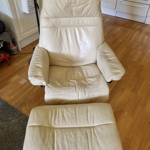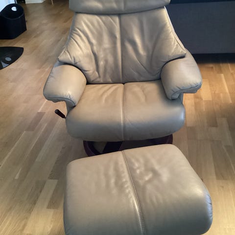 Elektrisk hvilestol som kan regulere både rygg og ben, samt heve seg for lettere å komme seg opp av stolen.