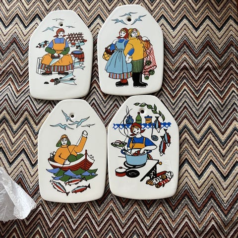 Figgjo Torskefiske plate med håndmalt design. Produktet er laget i Norge og har motiv som illustrerer torskefiske og kystmiljø.