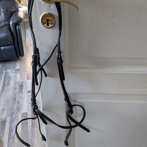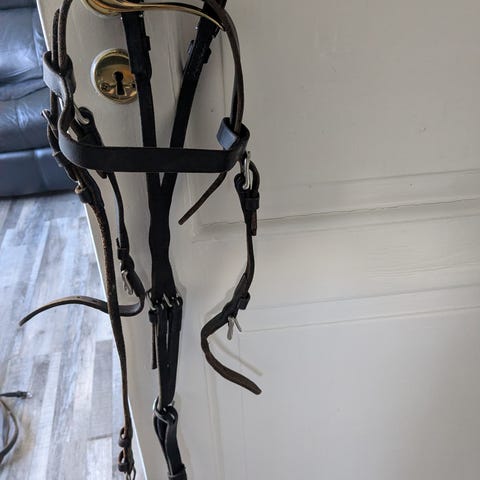 Dressur sjabraken er brukt men har ingen bruksmerker, kun skitten og har hår på seg