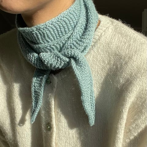 Sjal strikket i Green cashmere fra Jordclothing, farge Emerald. Garnet er produsert i Italia. Sjalet er inspirert av Sophie scarf fra Petiteknit. Sjalet er mykt og godt, og går én gang rundt halsen.