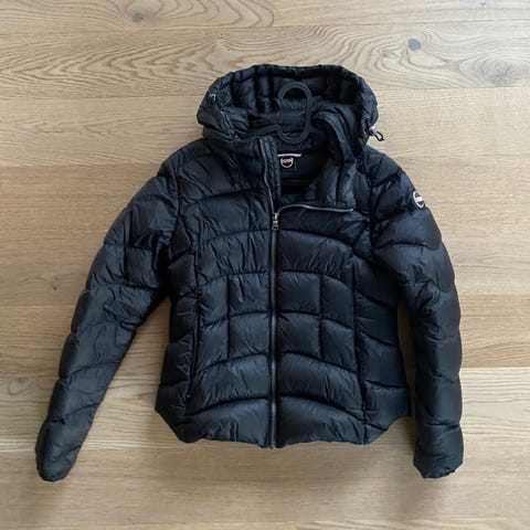 Colmar Vinterjakke i svart farge, laget av nylon materiale. Jakken er designet for kvinner og har størrelse 44, oppleves som xs/s. Kjempe fin sort pels. Egnet som ytterplagg for kalde vinterforhold.