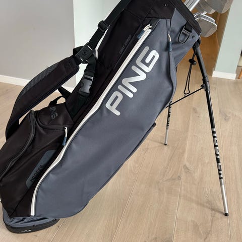Selger en original PING Hoofer bærebag, kjent som en av markedets beste og mest komfortable carry bags. Denne modellen kombinerer lav vekt, solid byggekvalitet og svært god bærekomfort – perfekt for deg som foretrekker å gå banen. Tidløs svart/hvit design med høy slitestyrke og gjennomtenkte detaljer.