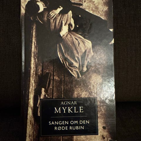 Agner Mykle Sangen om den røde rubin er en roman utgitt av Gyldendal Norsk Forlag i 1957. Boken er innbundet med beige rygg og har tekst på rygg og forside.