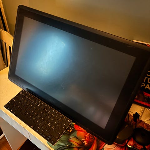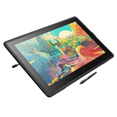 Wacom Cintiq 22 tegnebrett med 22 tommers skjerm. Enheten har en stor berøringsskjerm som egner seg for digital tegning og designarbeid. Passer for brukere som ønsker en kombinasjon av skjerm og tegneflate i ett produkt.