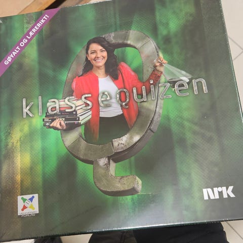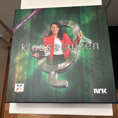 NRK Klassequizen brettspill med brett, spillebrikker og kort. Spill for 2 til 4 spillere med spørsmål og oppgaver. Passer for bruk i undervisning eller underholdning.