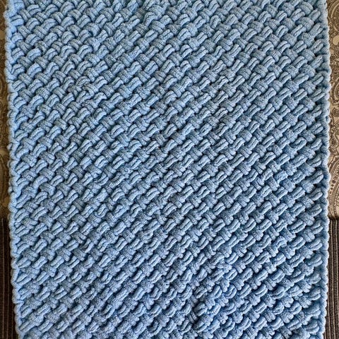 Håndstrikket babyteppe i myk merino.