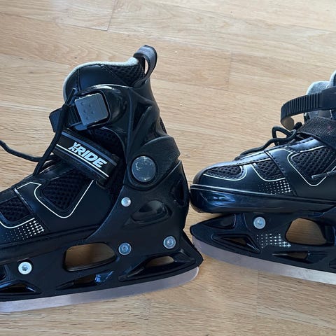 Skøytene har justerbar lukking med borrelås og spenne - og er laget med materialer som gir støtte og komfort for barn på isen.