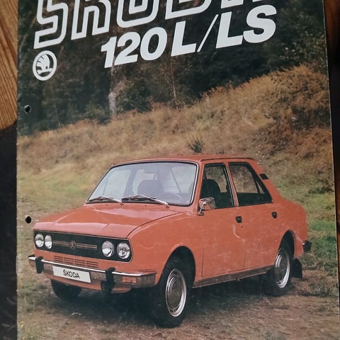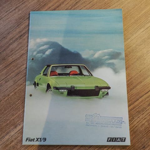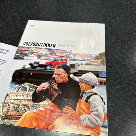 Volvo brosjyrer og dokumenter som inkluderer bilder av bilen. Materialet består av trykte papirdokumenter med informasjon om modellens spesifikasjoner