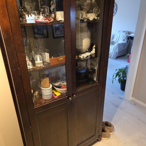Fint vitrineskap kjøpt hos Møbelringen. Med lys og dimmer i glassdelen