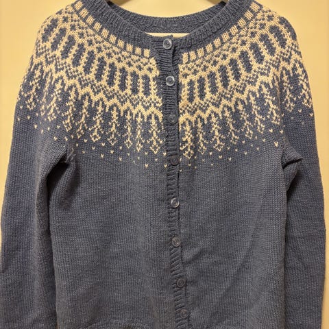 Hjemmestrikket kofte i ull.