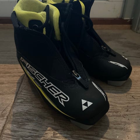 Fischer langrennssko med glidelås, i svart og gul farge. Skoene har festeplate for binding og er egnet for langrenn.