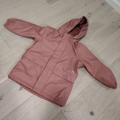 Skallsett i str 104 fra wheat i fargen dark terracotta. Bukse robin tech og jakke ada tech. Kjøpt nytt av meg og brukt til ei jente. Nypris 1500 kr. Pent brukt uforet regnjakke fra name it i samme str. Se bilder for anmerkninger, en flekk på bakside arm og anm ved halsen på skalljakka. Litt blassere i fargen. Selges samlet for 500 kr.