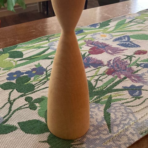 Høy og flott lysestake - hele 69 cm høy. En pen lysestake.