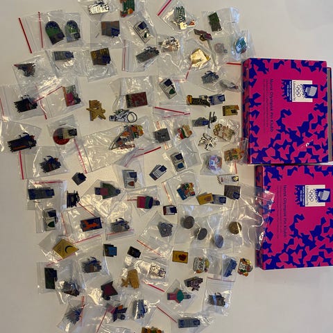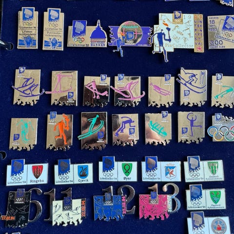 Olympic Pin Samling 1994 Lillehammer med over 50 pins.