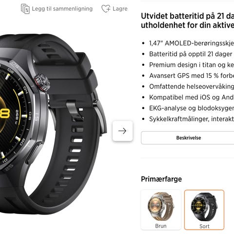 Samsung Galaxy Watch Ultra LTE. Titan og sort farge, mørk gummirem. Hel og pen, lite brukt og virker som den skal. Kjøpt for omtrent ett år siden. Mange funksjoner som treningsklokke og smartklokke. Ringefunksjoner aktiveres med E-SIM fra teleoperatør, og da kan man ringe osv. fra klokken mens mobiltelefonen ligger hjemme.