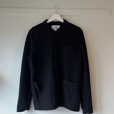 dressjakke i størrelse M, fargen svart. Jakken har et klassisk design med to knapper foran og to lommer. Innvendig foret med glatt stoff for komfort. Er en type «vintage» -både herrer og damer.