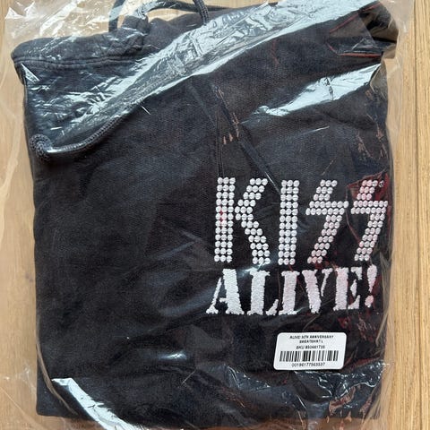 Helt ny og uåpnet Kiss Dressed to Kill (Rock and Roll all nite) 50 års jubileums hettegenser.