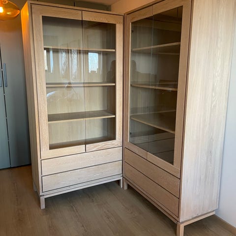 Solid vitrineskap i heltre eik.