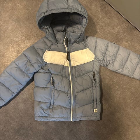 Jakke fra gullkorn i strl 122. Brukt men mye bruk igjen. Normal bruksslitasje med «nupper» på enden av armer og nederste del av jakken.