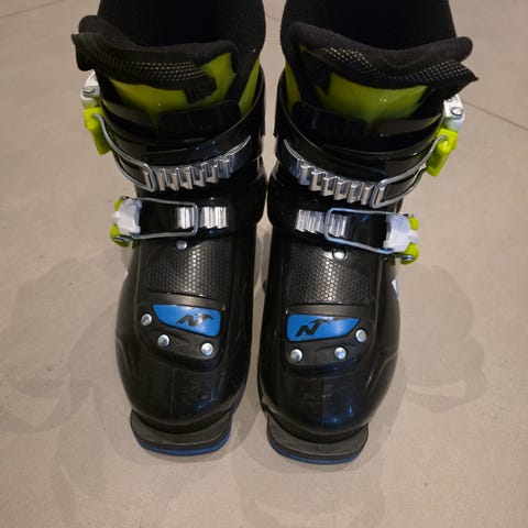 Nordica PCarv1 alpinstøvler i størrelse 160-175, tilsvarer skostørrelse 26-28. Yttermål 215 mm.